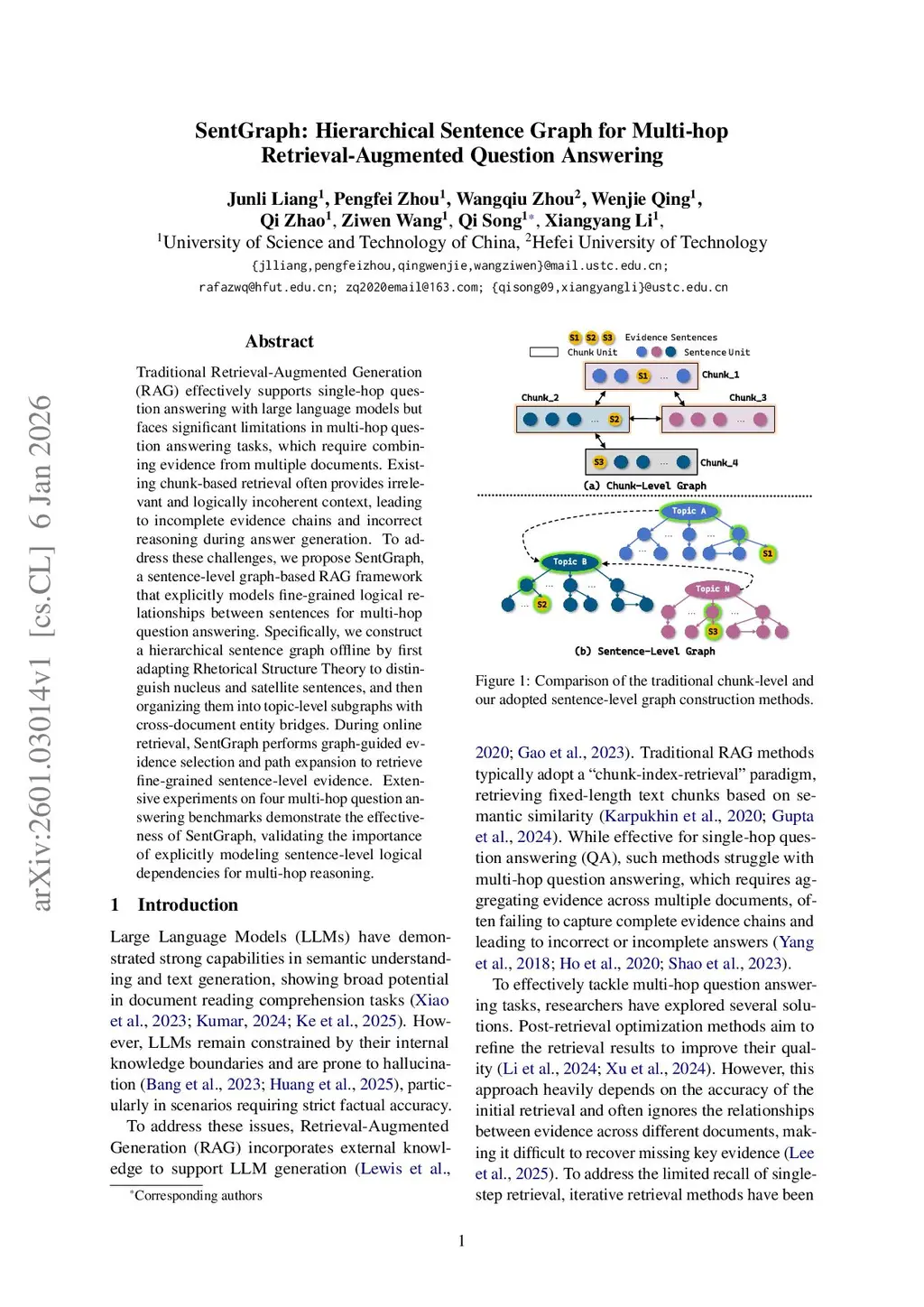 SentGraph: Hierarchical Sentence Graph for Multi-hop Retrieval-Augmented Question Answering