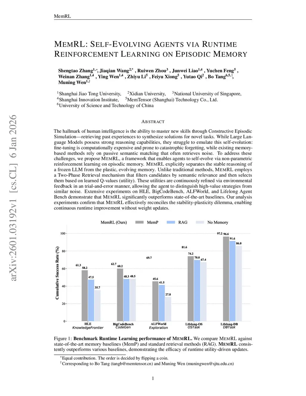 MemRL: Self-Evolving Agents via Runtime Reinforcement Learning on Episodic Memory