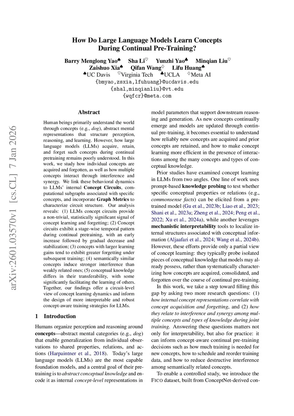 How Do Large Language Models Learn Concepts During Continual Pre-Training?