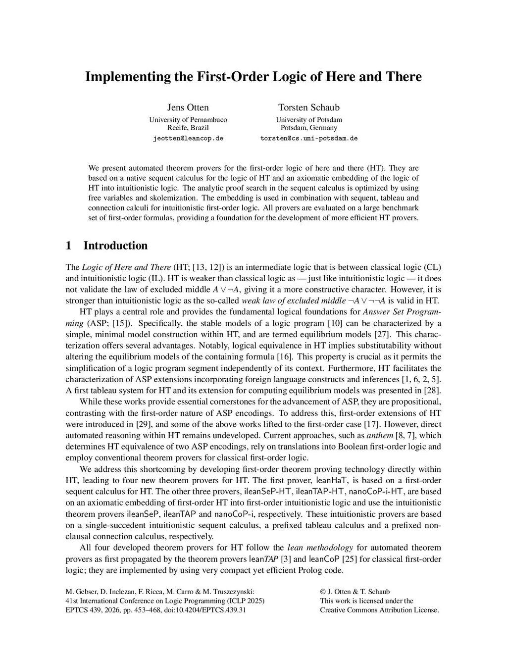 Implementing the First-Order Logic of Here and There