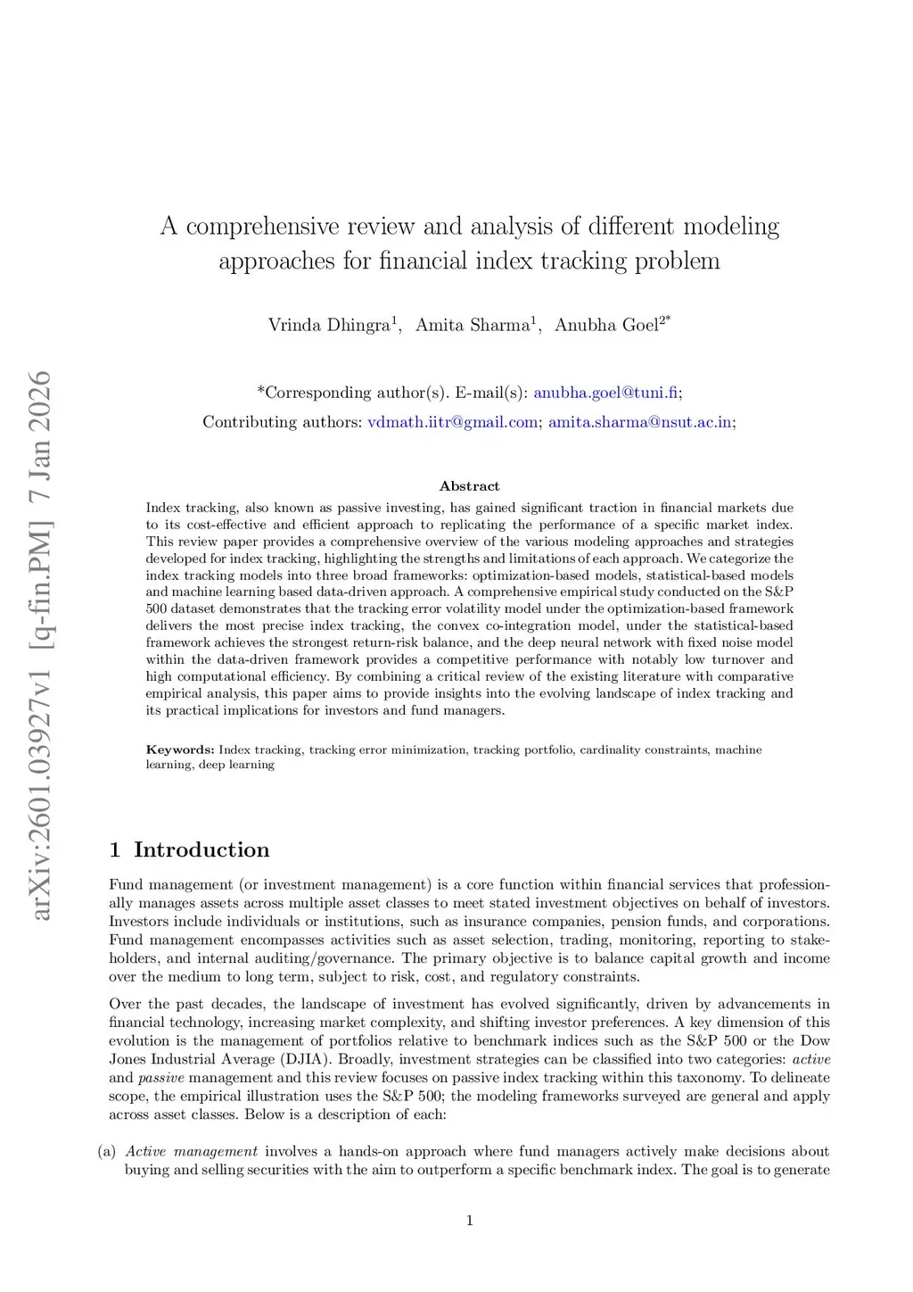 A comprehensive review and analysis of different modeling approaches for financial index tracking problem