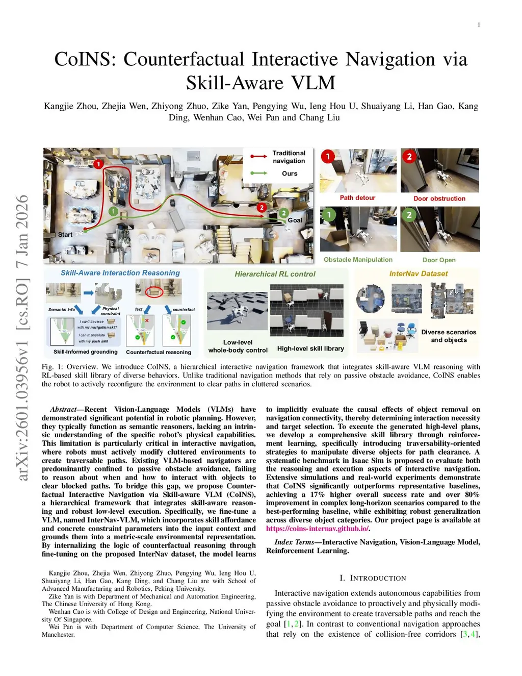 CoINS: Counterfactual Interactive Navigation via Skill-Aware VLM
