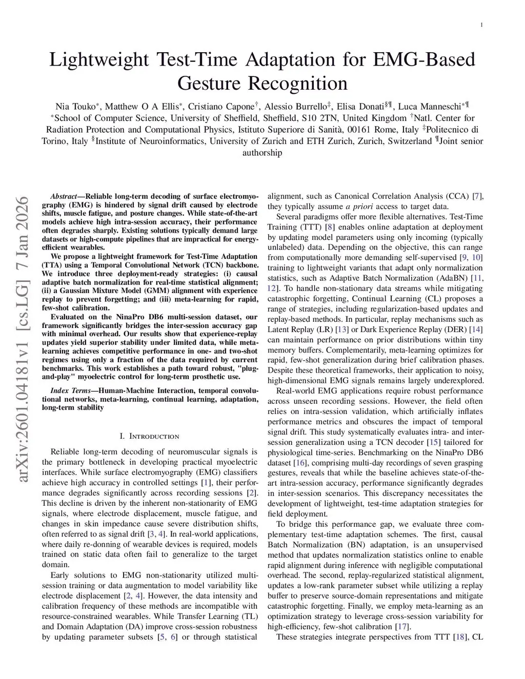 Lightweight Test-Time Adaptation for EMG-Based Gesture Recognition