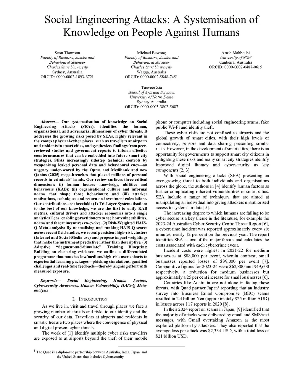 Our systematisation of knowledge on Social Engineering Attacks (SEAs), identifies the human, organisational, and adversarial dimensions of cyber threats. It addresses the growing risks posed by SEAs, highly relevant in the context physical cyber places, such as travellers at airports and residents in smart cities, and synthesizes findings from peer reviewed studies, industry and government reports to inform effective countermeasures that can be embedded into future smart city strategies. SEAs increasingly sidestep technical controls by weaponising leaked personal data and behavioural cues, an urgency underscored by the Optus, Medibank and now Qantas (2025) mega breaches that placed millions of personal records in criminals' hands. Our review surfaces three critical dimensions: (i) human factors of knowledge, abilities and behaviours (KAB) (ii) organisational culture and informal norms that shape those behaviours and (iii) attacker motivations, techniques and return on investment calculations. Our contributions are threefold: (1) TriLayer Systematisation: to the best of our knowledge, we are the first to unify KAB metrics, cultural drivers and attacker economics into a single analytical lens, enabling practitioners to see how vulnerabilities, norms and threat incentives coevolve. (2) Risk Weighted HAISQ Meta analysis: By normalising and ranking HAISQ scores across recent field studies, we reveal persistent high risk clusters (Internet and Social Media use) and propose impact weightings that make the instrument predictive rather than descriptive. (3) Adaptive 'Segment and Simulate' Training Blueprint: Building on clustering evidence, we outline a differentiated programme that matches low, medium, high risk user cohorts to experiential learning packages including phishing simulations, gamified challenges and realtime feedback thereby aligning effort with measured exposure.