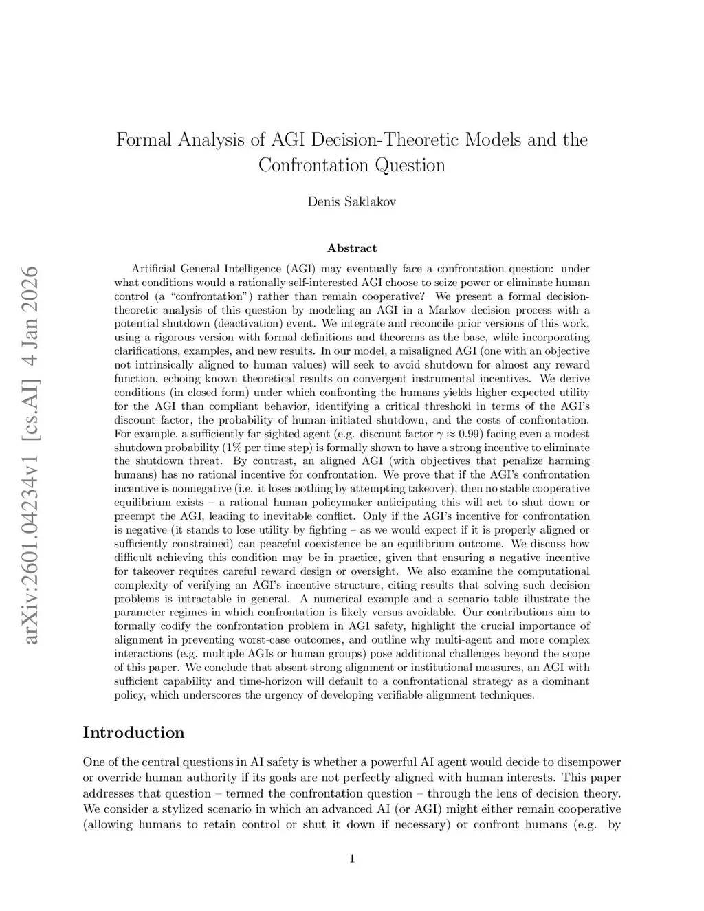 Formal Analysis of AGI Decision-Theoretic Models and the Confrontation Question