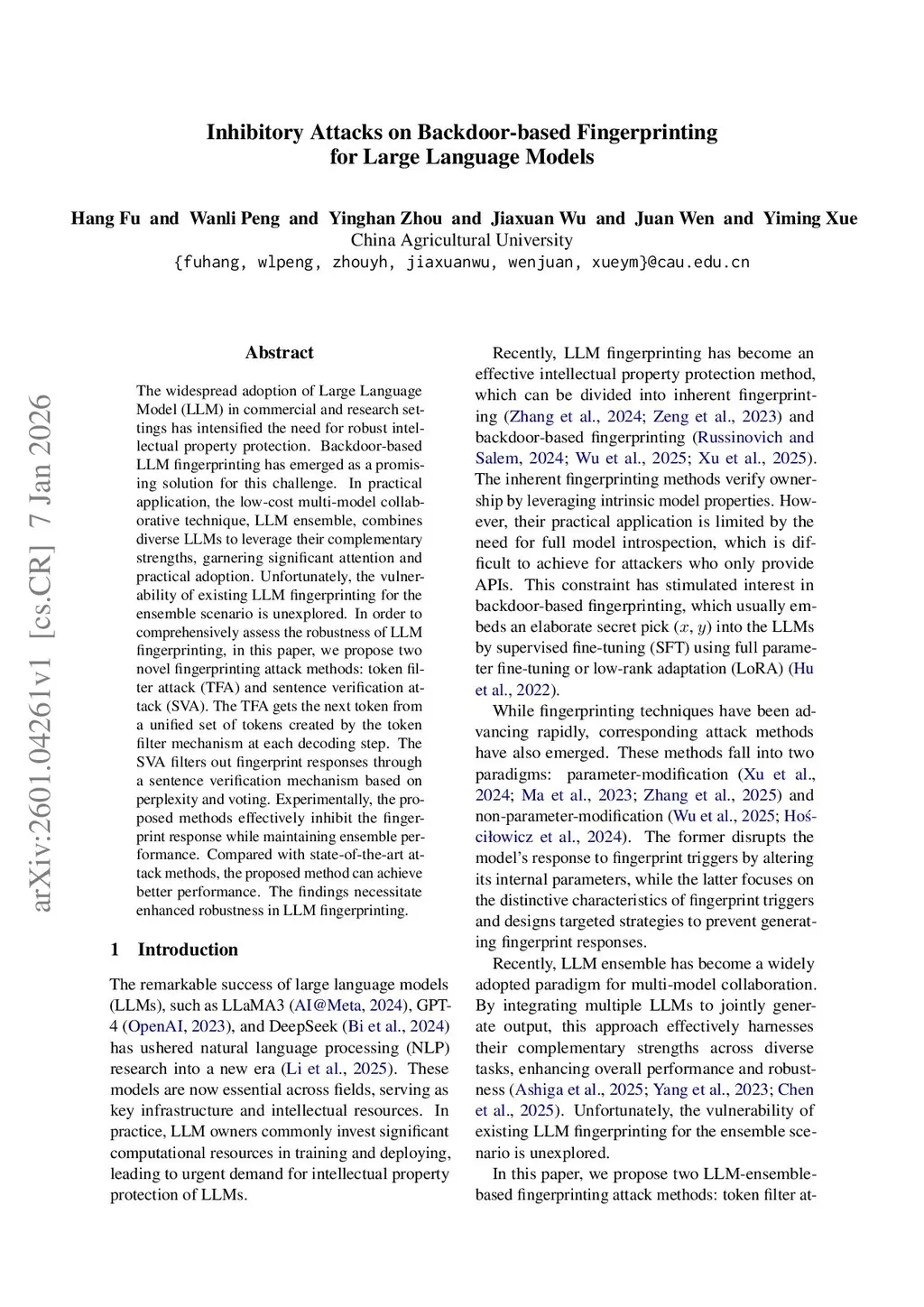 Inhibitory Attacks on Backdoor-based Fingerprinting for Large Language Models