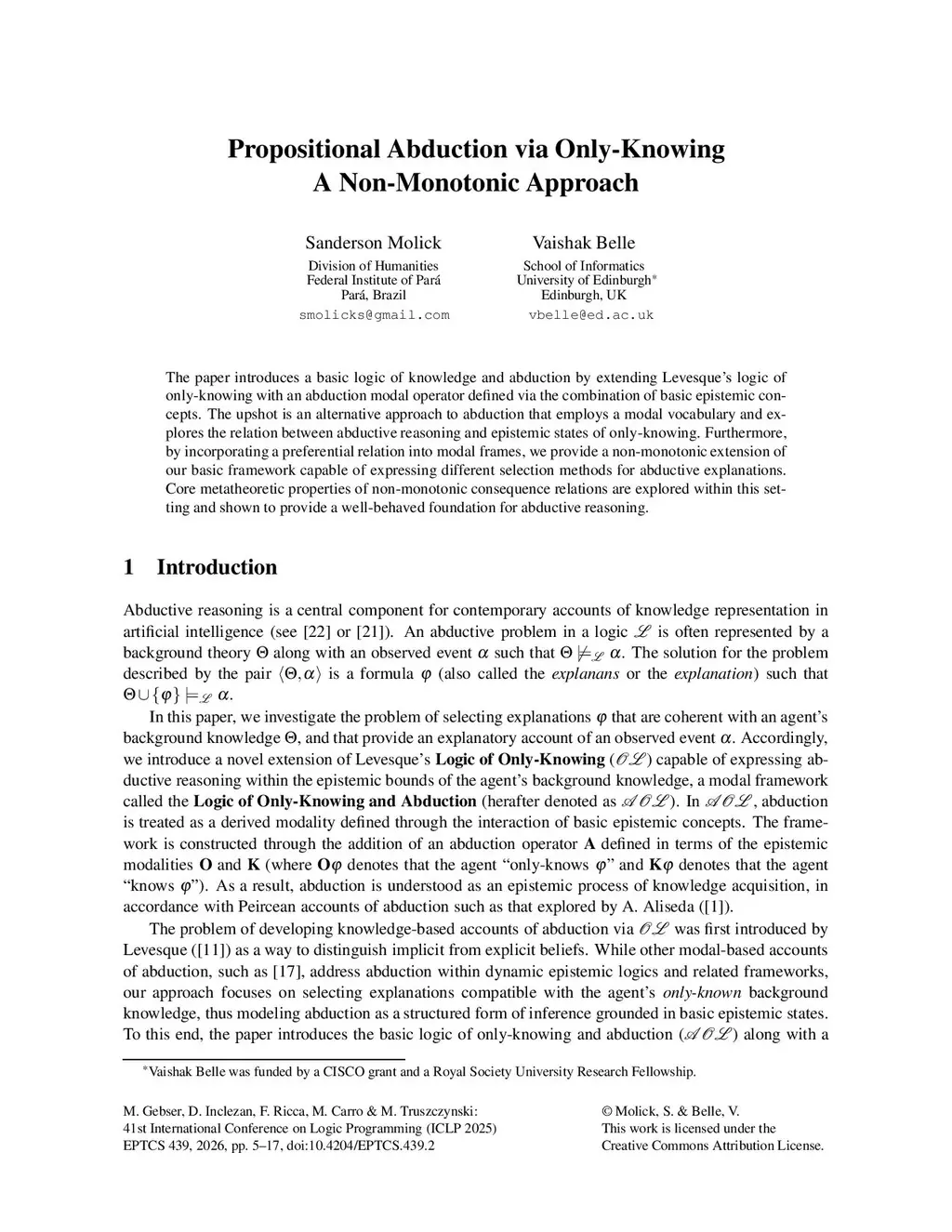 The paper introduces a basic logic of knowledge and abduction by extending Levesque logic of only-knowing with an abduction modal operator defined via the combination of basic epistemic concepts. The upshot is an alternative approach to abduction that employs a modal vocabulary and explores the relation between abductive reasoning and epistemic states of only knowing. Furthermore, by incorporating a preferential relation into modal frames, we provide a non-monotonic extension of our basic framework capable of expressing different selection methods for abductive explanations. Core metatheoretic properties of non-monotonic consequence relations are explored within this setting and shown to provide a well-behaved foundation for abductive reasoning.