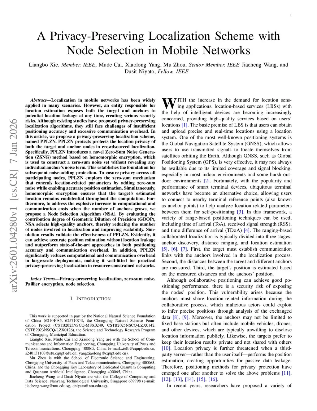 A Privacy-Preserving Localization Scheme with Node Selection in Mobile Networks