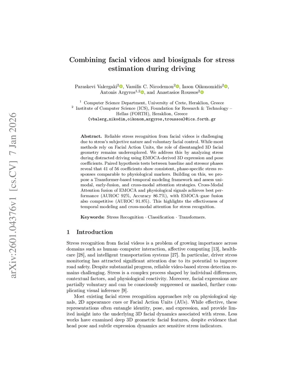 Reliable stress recognition is critical in applications such as medical monitoring and safety-critical systems, including real-world driving. While stress is commonly detected using physiological signals such as perinasal perspiration and heart rate, facial activity provides complementary cues that can be captured unobtrusively from video. We propose a multimodal stress estimation framework that combines facial videos and physiological signals, remaining effective even when biosignal acquisition is challenging. Facial behavior is represented using a dense 3D Morphable Model, yielding a 56-dimensional descriptor that captures subtle expression and head-pose dynamics over time. To study how stress modulates facial motion, we perform extensive experiments alongside established physiological markers. Paired hypothesis tests between baseline and stressor phases show that 38 of 56 facial components exhibit consistent, phase-specific stress responses comparable to physiological markers. Building on these findings, we introduce a Transformer-based temporal modeling framework and evaluate unimodal, early-fusion, and cross-modal attention strategies. Cross-modal attention fusion of 3D-derived facial features with physiological signals substantially improves performance over physiological signals alone, increasing AUROC from 52.7% and accuracy from 51.0% to 92.0% and 86.7%, respectively. Although evaluated on driving data, the proposed framework and protocol may generalize to other stress estimation settings.
