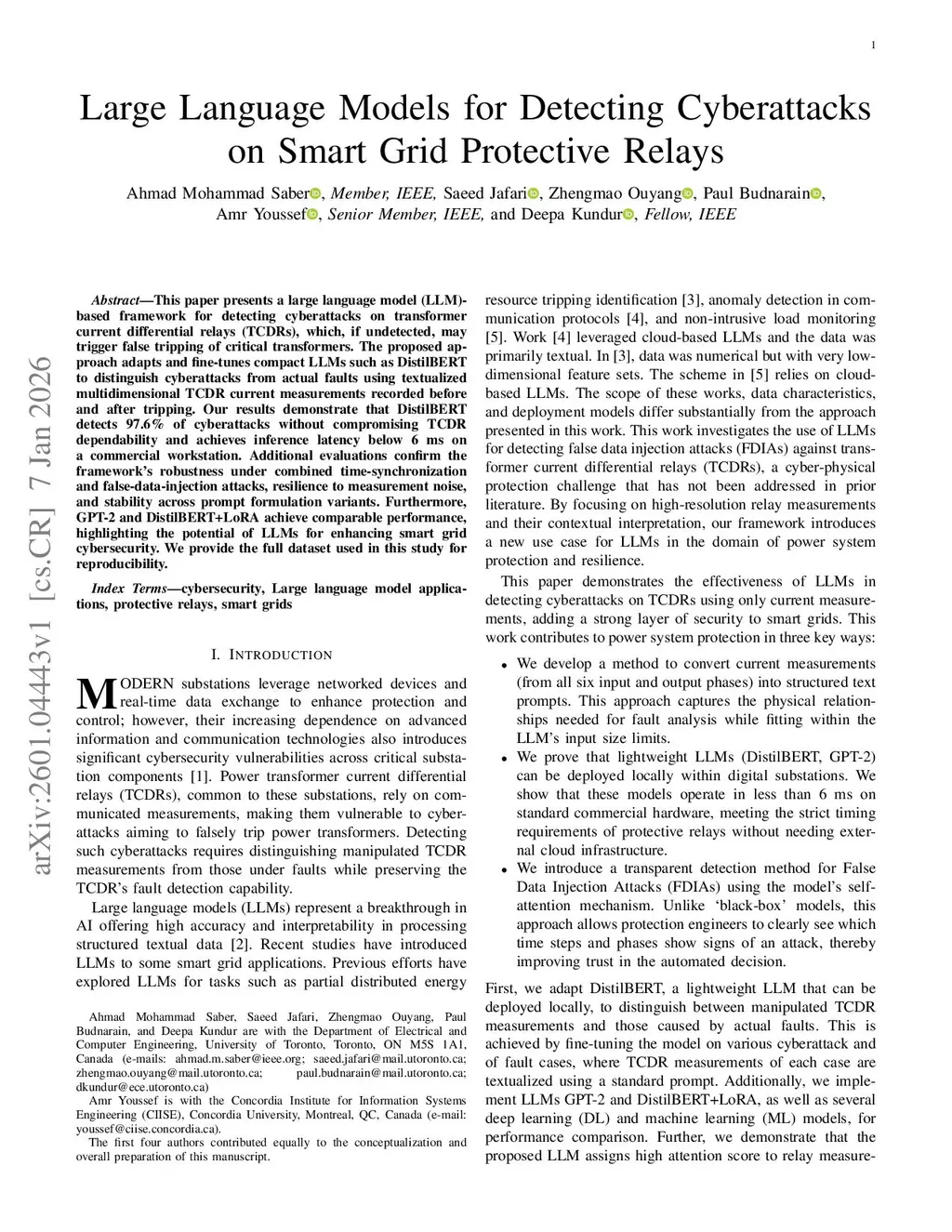 Large Language Models for Detecting Cyberattacks on Smart Grid Protective Relays