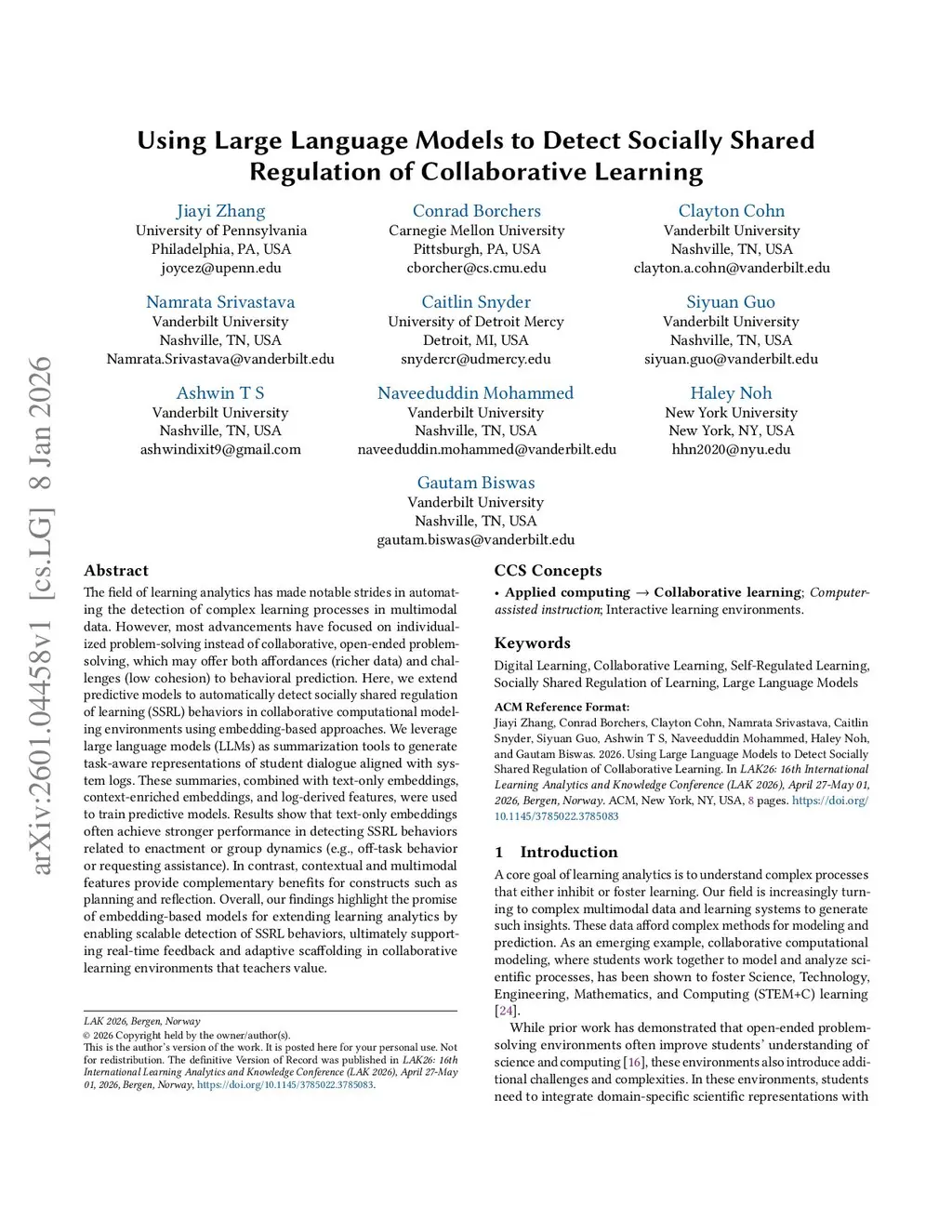 The field of learning analytics has made notable strides in automating the detection of complex learning processes in multimodal data. However, most advancements have focused on individualized problem-solving instead of collaborative, open-ended problem-solving, which may offer both affordances (richer data) and challenges (low cohesion) to behavioral prediction. Here, we extend predictive models to automatically detect socially shared regulation of learning (SSRL) behaviors in collaborative computational modeling environments using embedding-based approaches. We leverage large language models (LLMs) as summarization tools to generate task-aware representations of student dialogue aligned with system logs. These summaries, combined with text-only embeddings, context-enriched embeddings, and log-derived features, were used to train predictive models. Results show that text-only embeddings often achieve stronger performance in detecting SSRL behaviors related to enactment or group dynamics (e.g., off-task behavior or requesting assistance). In contrast, contextual and multimodal features provide complementary benefits for constructs such as planning and reflection. Overall, our findings highlight the promise of embedding-based models for extending learning analytics by enabling scalable detection of SSRL behaviors, ultimately supporting real-time feedback and adaptive scaffolding in collaborative learning environments that teachers value.