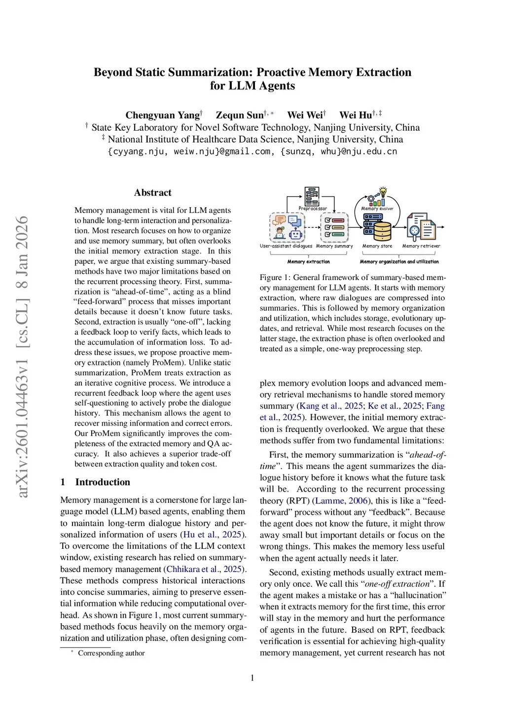 Beyond Static Summarization: Proactive Memory Extraction for LLM Agents