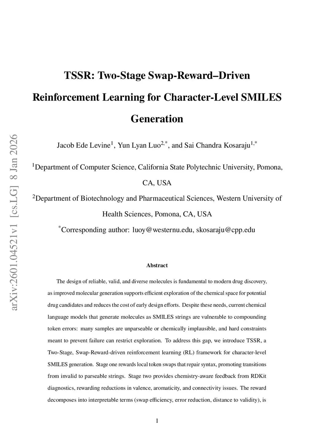 TSSR: Two-Stage Swap-Reward-Driven Reinforcement Learning for Character-Level SMILES Generation