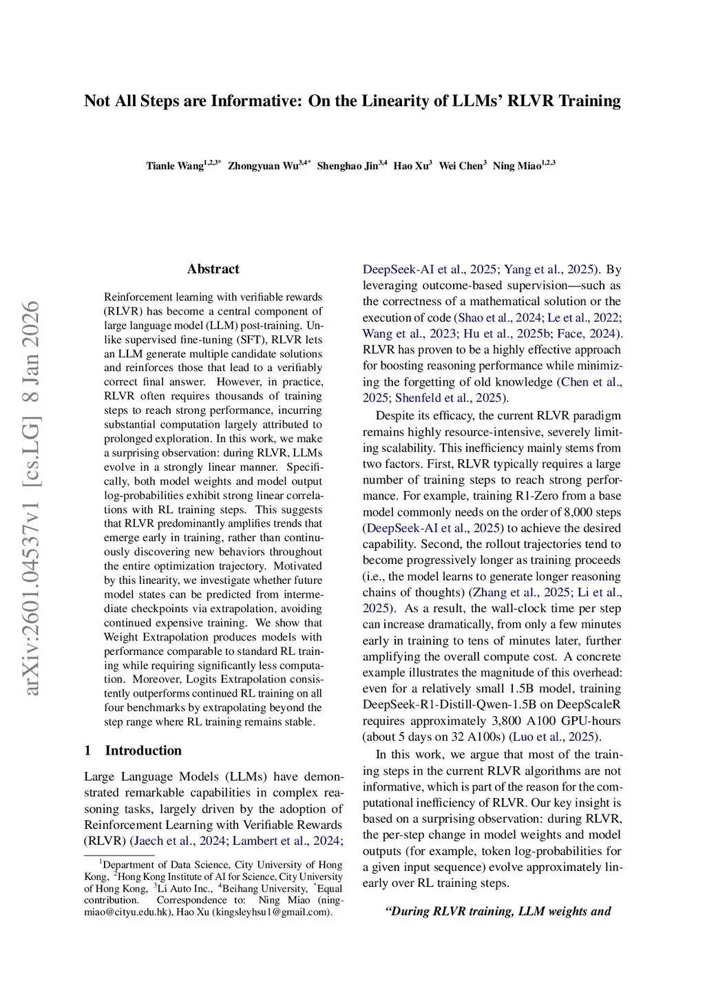 Not All Steps are Informative: On the Linearity of LLMs' RLVR Training