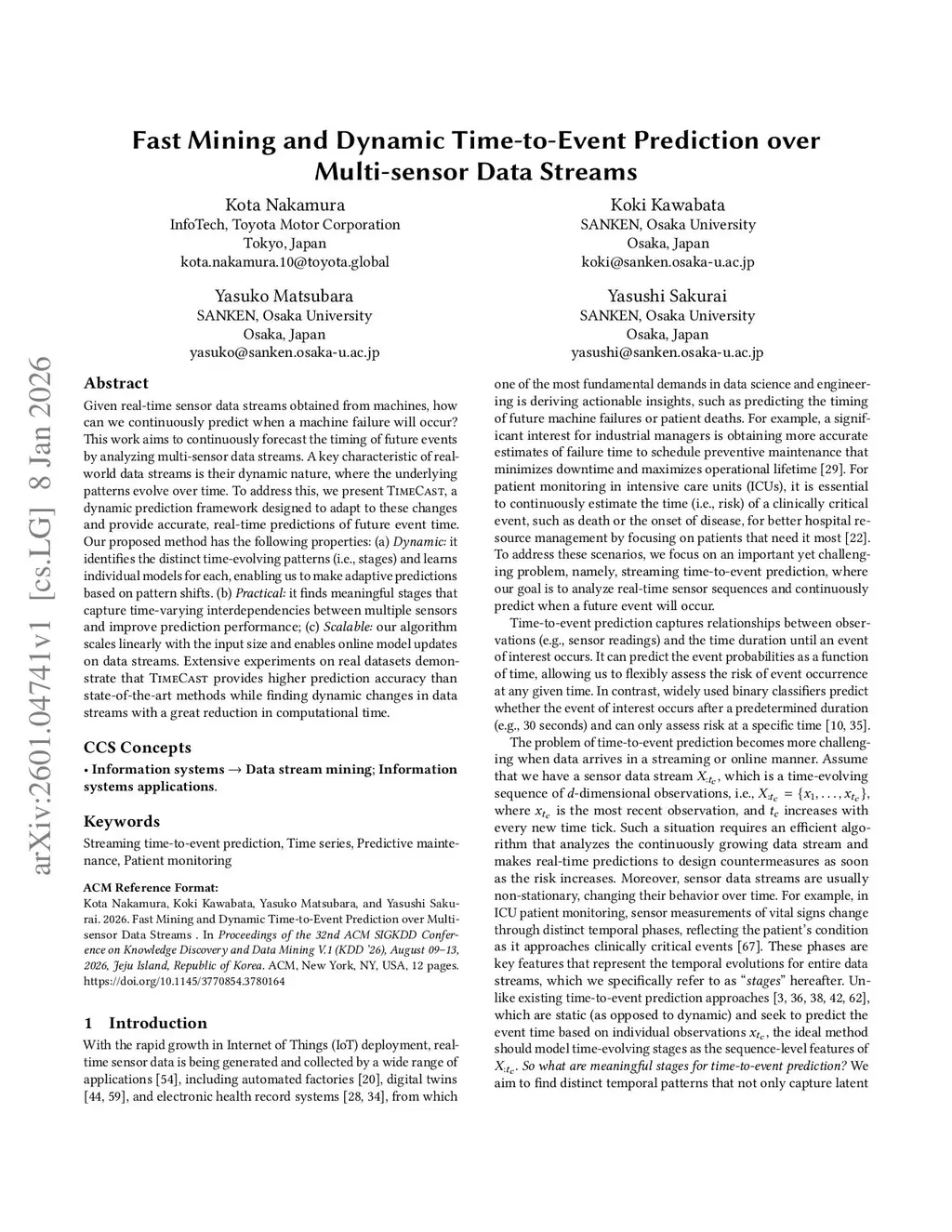 Fast Mining and Dynamic Time-to-Event Prediction over Multi-sensor Data Streams