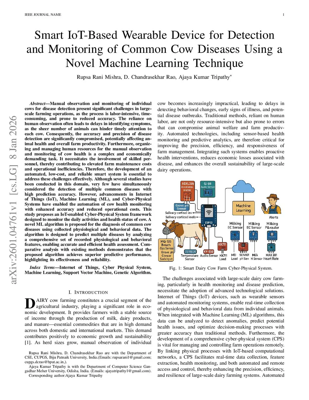Smart IoT-Based Wearable Device for Detection and Monitoring of Common Cow Diseases Using a Novel Machine Learning Technique