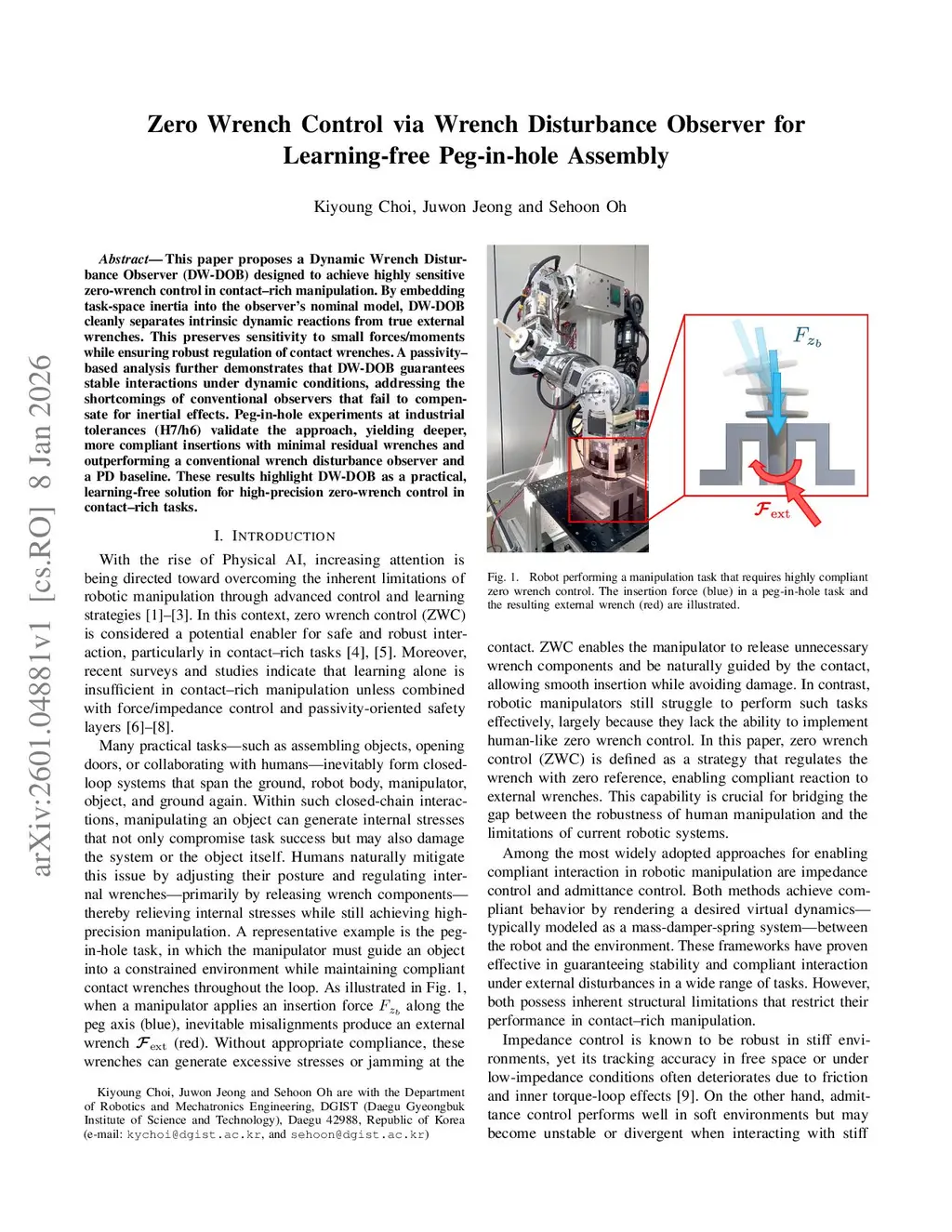 Zero Wrench Control via Wrench Disturbance Observer for Learning-free Peg-in-hole Assembly