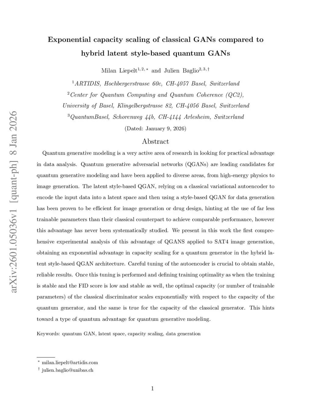 Quantum generative modeling is a very active area of research in looking for practical advantage in data analysis. Quantum generative adversarial networks (QGANs) are leading candidates for quantum generative modeling and have been applied to diverse areas, from high-energy physics to image generation. The latent style-based QGAN, relying on a classical variational autoencoder to encode the input data into a latent space and then using a style-based QGAN for data generation has been proven to be efficient for image generation or drug design, hinting at the use of far less trainable parameters than their classical counterpart to achieve comparable performance, however this advantage has never been systematically studied. We present in this work the first comprehensive experimental analysis of this advantage of QGANS applied to SAT4 image generation, obtaining an exponential advantage in capacity scaling for a quantum generator in the hybrid latent style-based QGAN architecture. Careful tuning of the autoencoder is crucial to obtain stable, reliable results. Once this tuning is performed and defining training optimality as when the training is stable and the FID score is low and stable as well, the optimal capacity (or number of trainable parameters) of the classical discriminator scales exponentially with respect to the capacity of the quantum generator, and the same is true for the capacity of the classical generator. This hints toward a type of quantum advantage for quantum generative modeling.