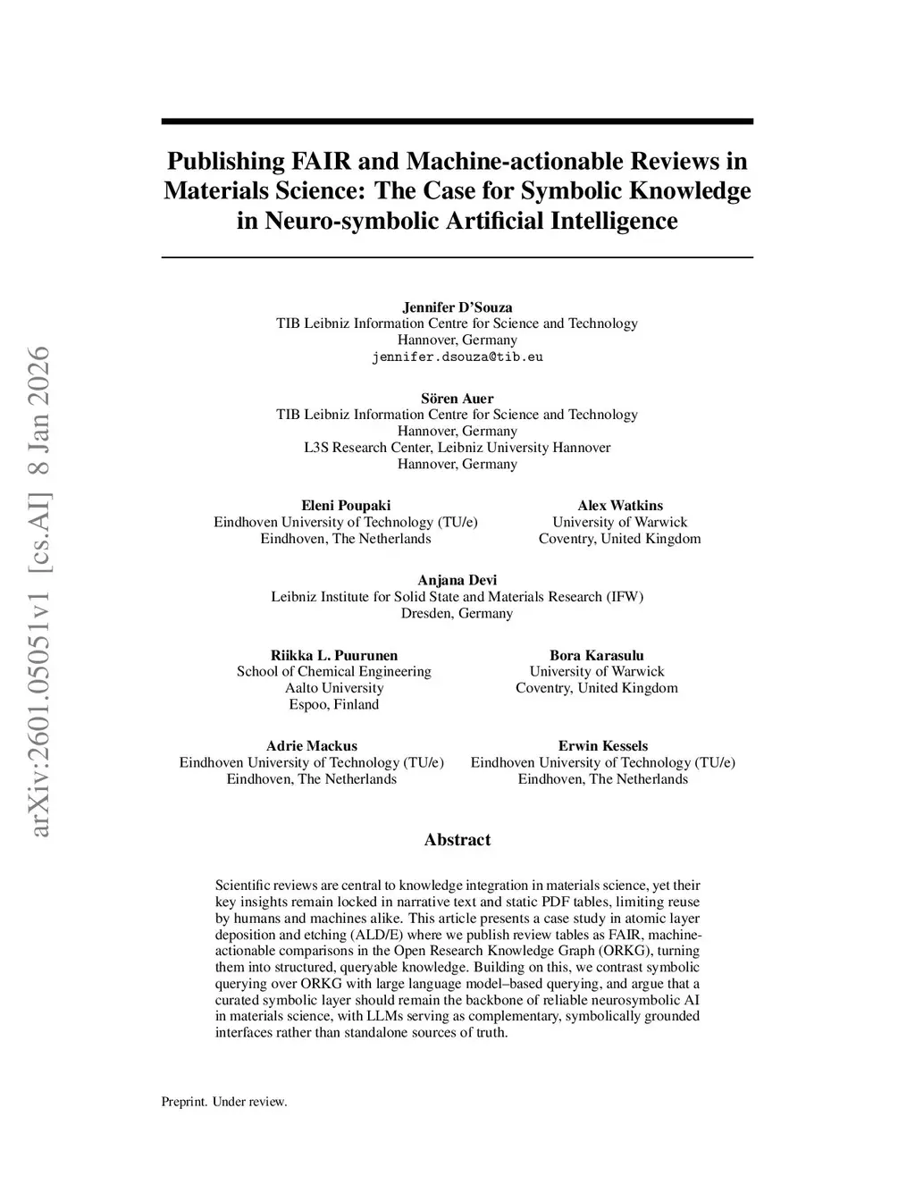Scientific reviews are central to knowledge integration in materials science, yet their key insights remain locked in narrative text and static PDF tables, limiting reuse by humans and machines alike. This article presents a case study in atomic layer deposition and etching (ALD/E) where we publish review tables as FAIR, machine-actionable comparisons in the Open Research Knowledge Graph (ORKG), turning them into structured, queryable knowledge. Building on this, we contrast symbolic querying over ORKG with large language model-based querying, and argue that a curated symbolic layer should remain the backbone of reliable neurosymbolic AI in materials science, with LLMs serving as complementary, symbolically grounded interfaces rather than standalone sources of truth.