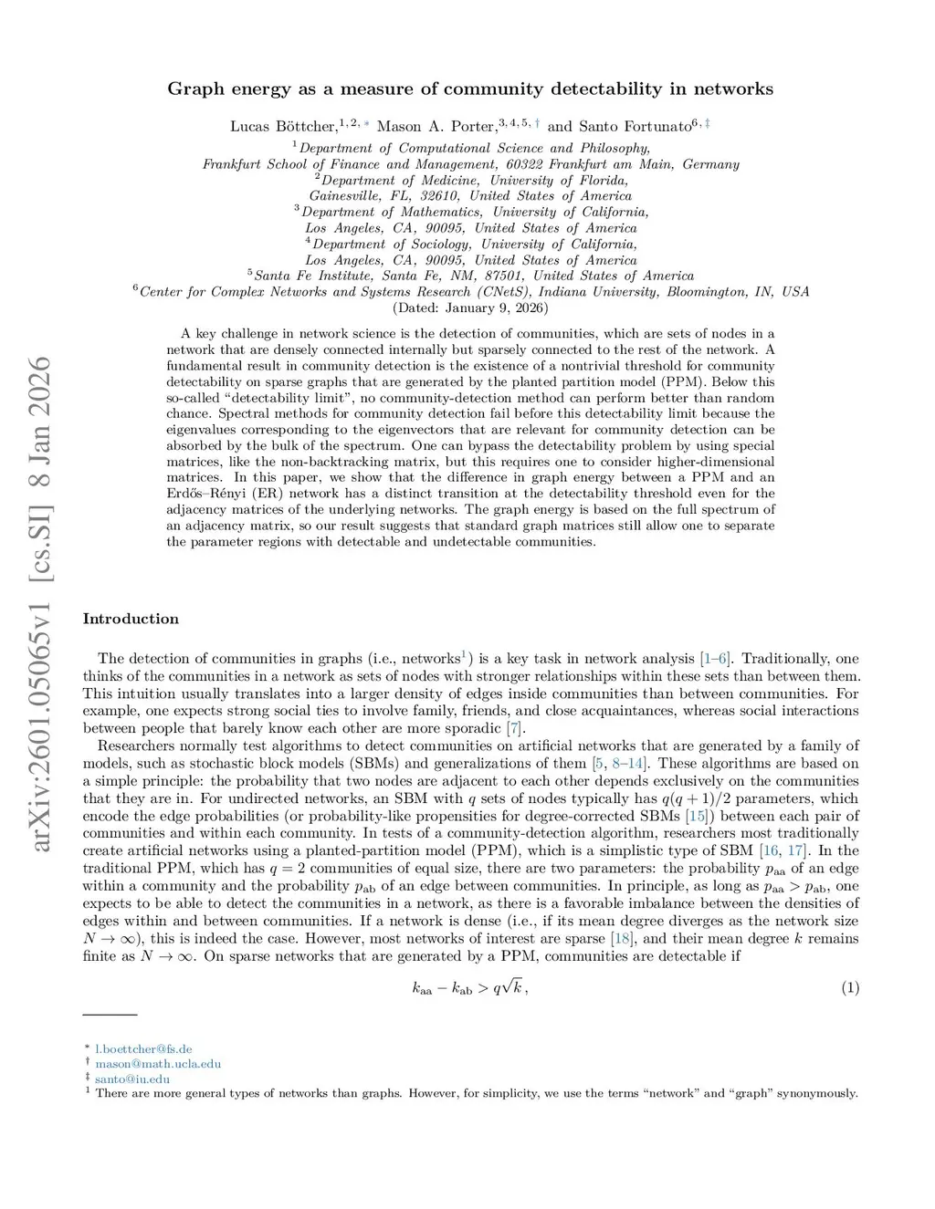 A key challenge in network science is the detection of communities, which are sets of nodes in a network that are densely connected internally but sparsely connected to the rest of the network. A fundamental result in community detection is the existence of a nontrivial threshold for community detectability on sparse graphs that are generated by the planted partition model (PPM). Below this so-called ``detectability limit'', no community-detection method can perform better than random chance. Spectral methods for community detection fail before this detectability limit because the eigenvalues corresponding to the eigenvectors that are relevant for community detection can be absorbed by the bulk of the spectrum. One can bypass the detectability problem by using special matrices, like the non-backtracking matrix, but this requires one to consider higher-dimensional matrices. In this paper, we show that the difference in graph energy between a PPM and an Erdős--Rényi (ER) network has a distinct transition at the detectability threshold even for the adjacency matrices of the underlying networks. The graph energy is based on the full spectrum of an adjacency matrix, so our result suggests that standard graph matrices still allow one to separate the parameter regions with detectable and undetectable communities.