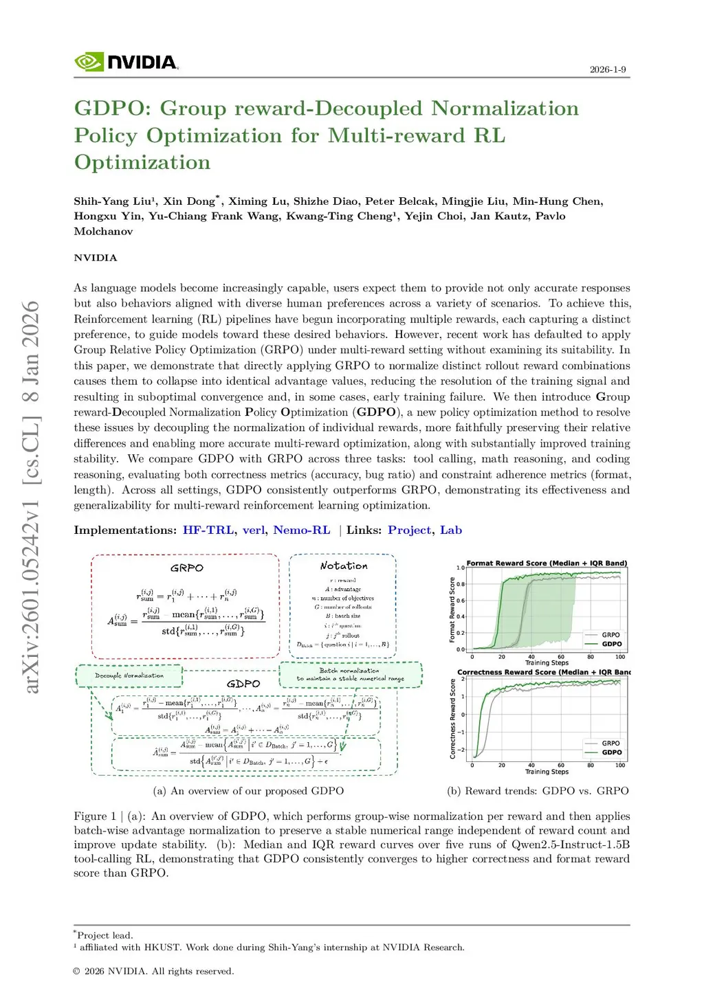 GDPO: Group reward-Decoupled Normalization Policy Optimization for Multi-reward RL Optimization