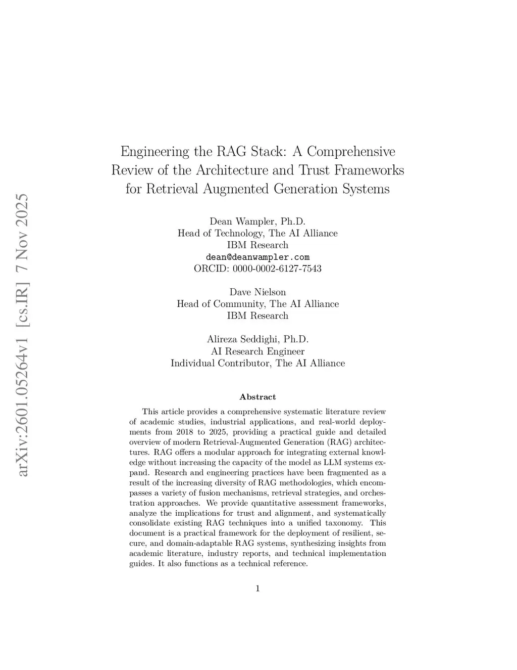 Engineering the RAG Stack: A Comprehensive Review of the Architecture and Trust Frameworks for Retrieval-Augmented Generation Systems