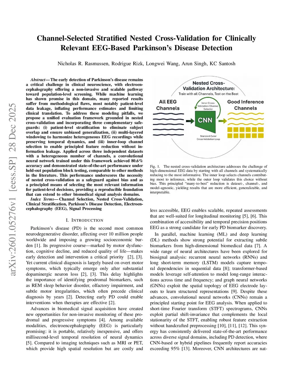 Channel Selected Stratified Nested Cross Validation for Clinically Relevant EEG Based Parkinsons Disease Detection
