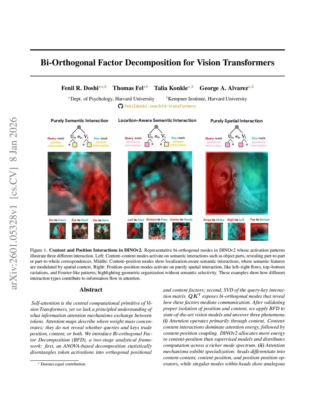 Bi-Orthogonal Factor Decomposition for Vision Transformers