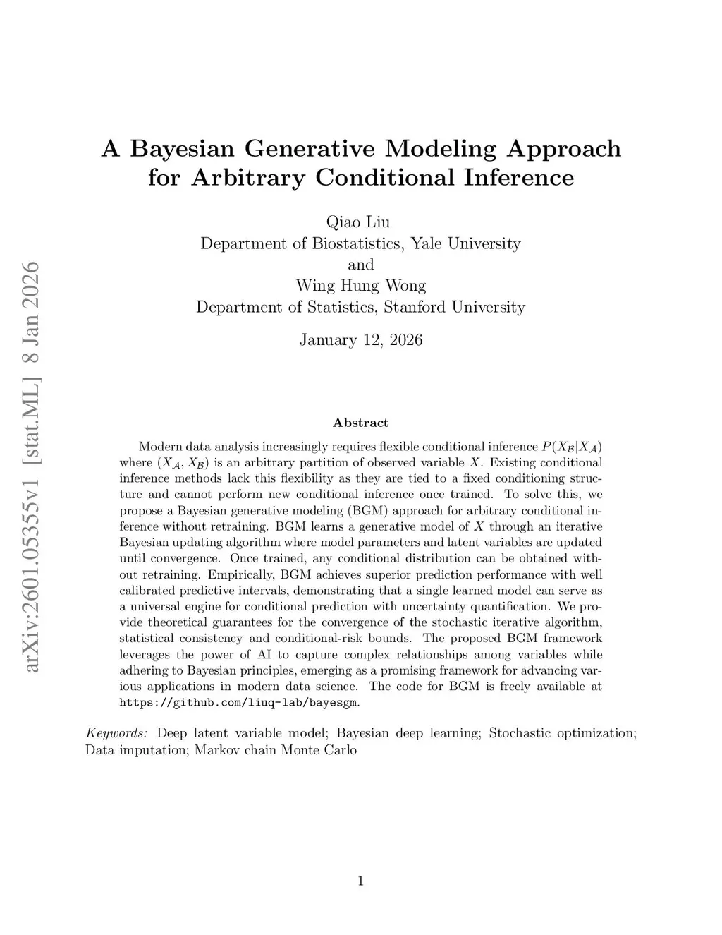 An AI-powered Bayesian Generative Modeling Approach for Arbitrary Conditional Inference