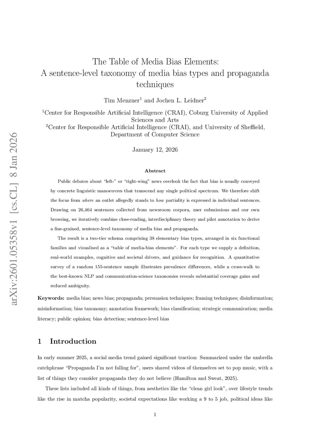 The Table of Media Bias Elements: A sentence-level taxonomy of media bias types and propaganda techniques
