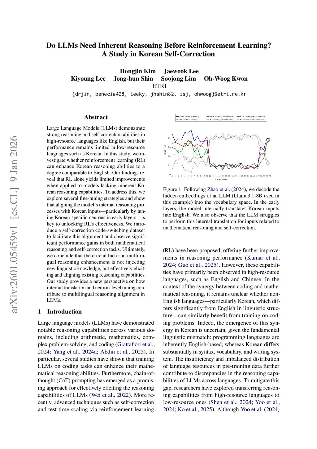 Do LLMs Need Inherent Reasoning Before Reinforcement Learning? A Study in Korean Self-Correction
