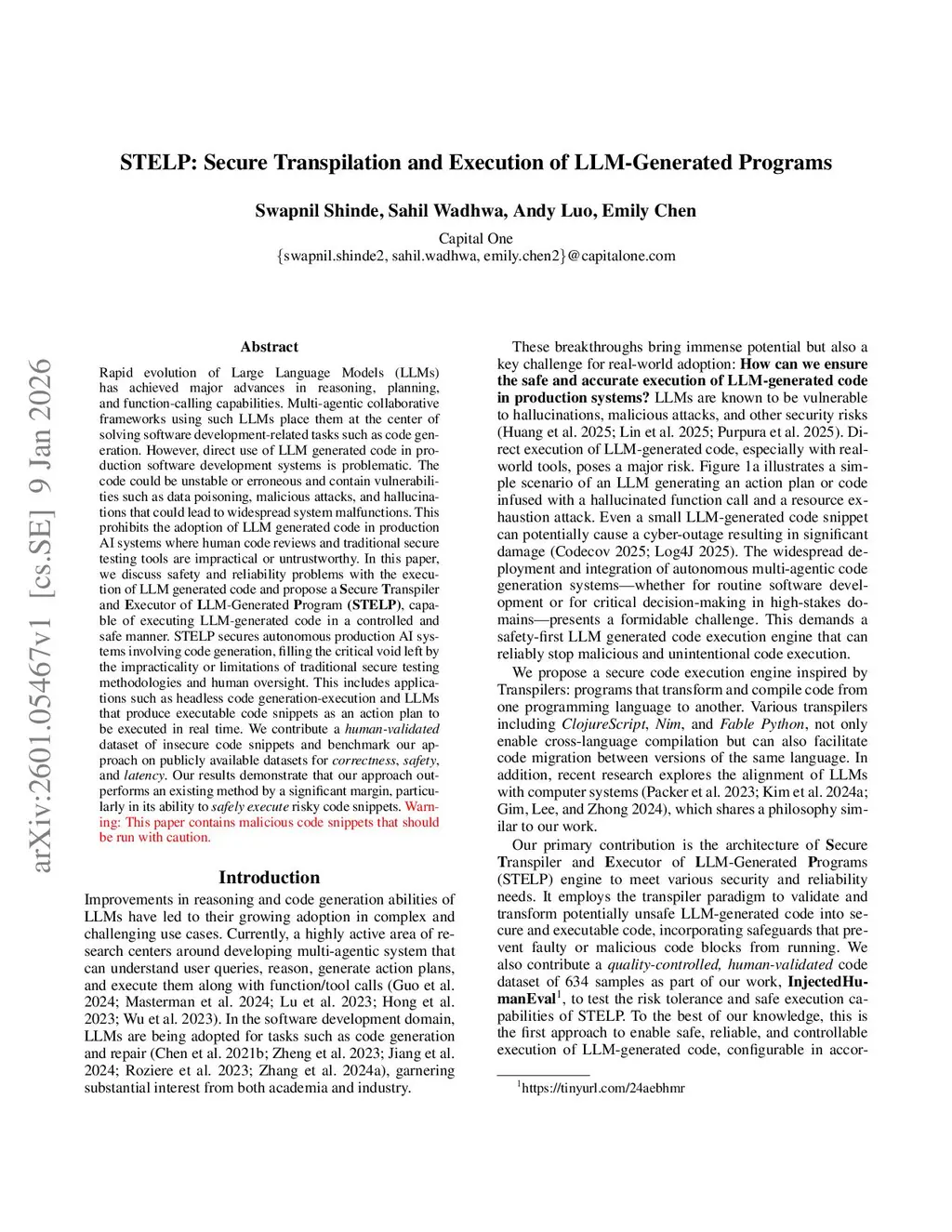 STELP: Secure Transpilation and Execution of LLM-Generated Programs