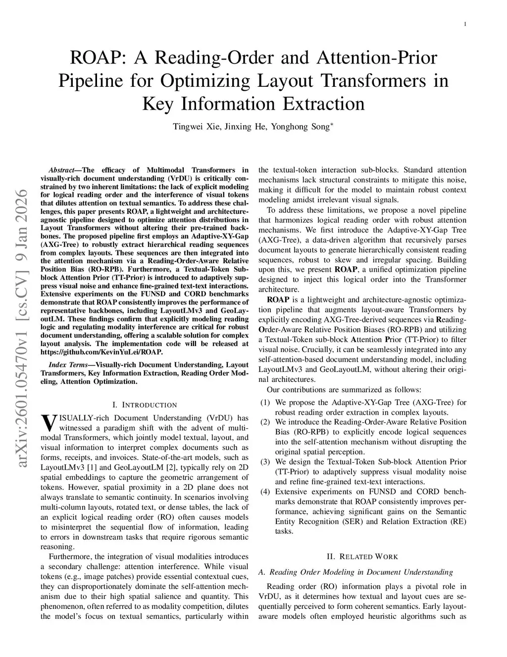ROAP: A Reading-Order and Attention-Prior Pipeline for Optimizing Layout Transformers in Key Information Extraction