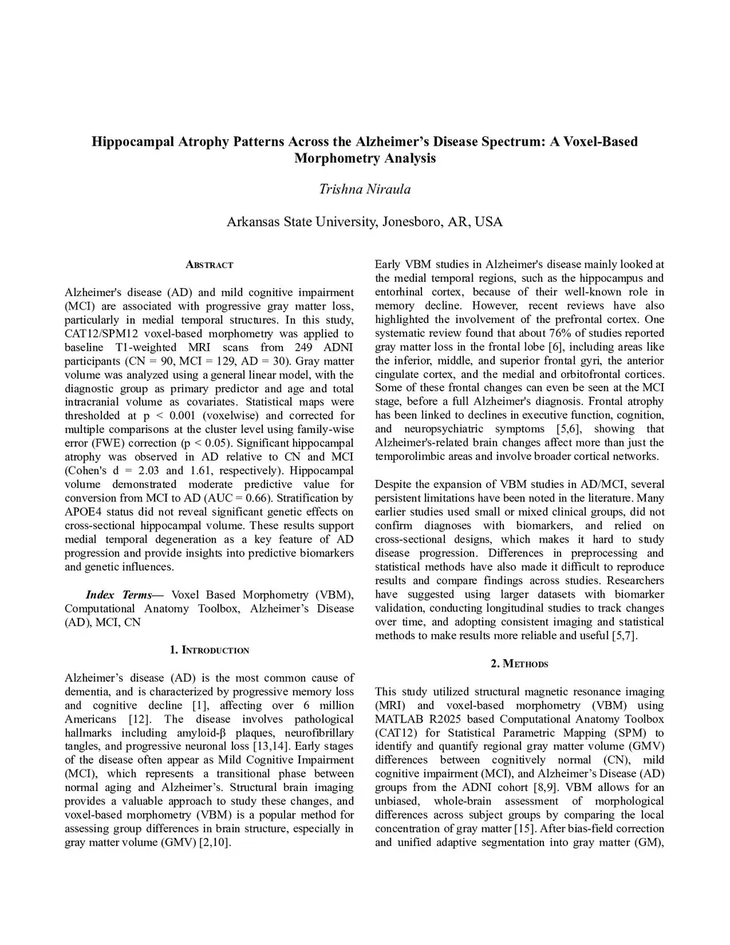 Hippocampal Atrophy Patterns Across the Alzheimer's Disease Spectrum: A Voxel-Based Morphometry Analysis