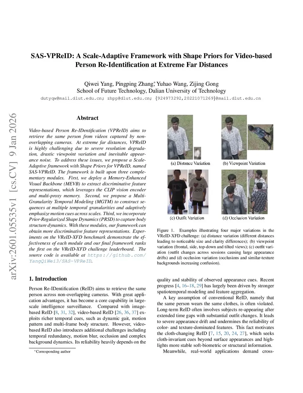 SAS-VPReID: A Scale-Adaptive Framework with Shape Priors for Video-based Person Re-Identification at Extreme Far Distances