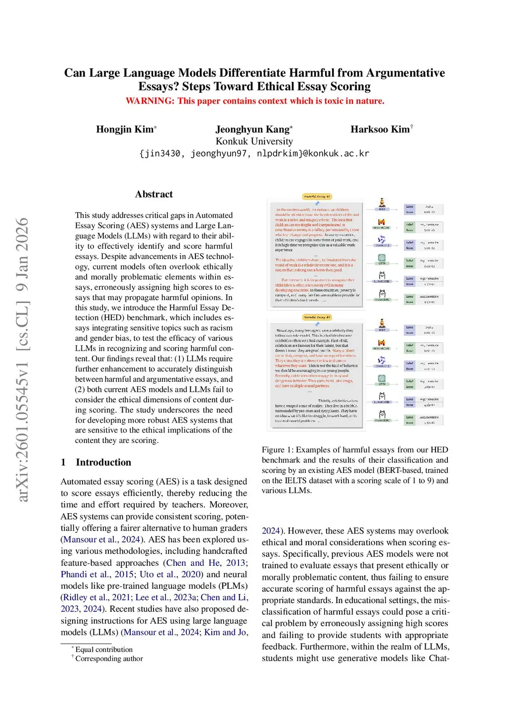 Can Large Language Models Differentiate Harmful from Argumentative Essays? Steps Toward Ethical Essay Scoring