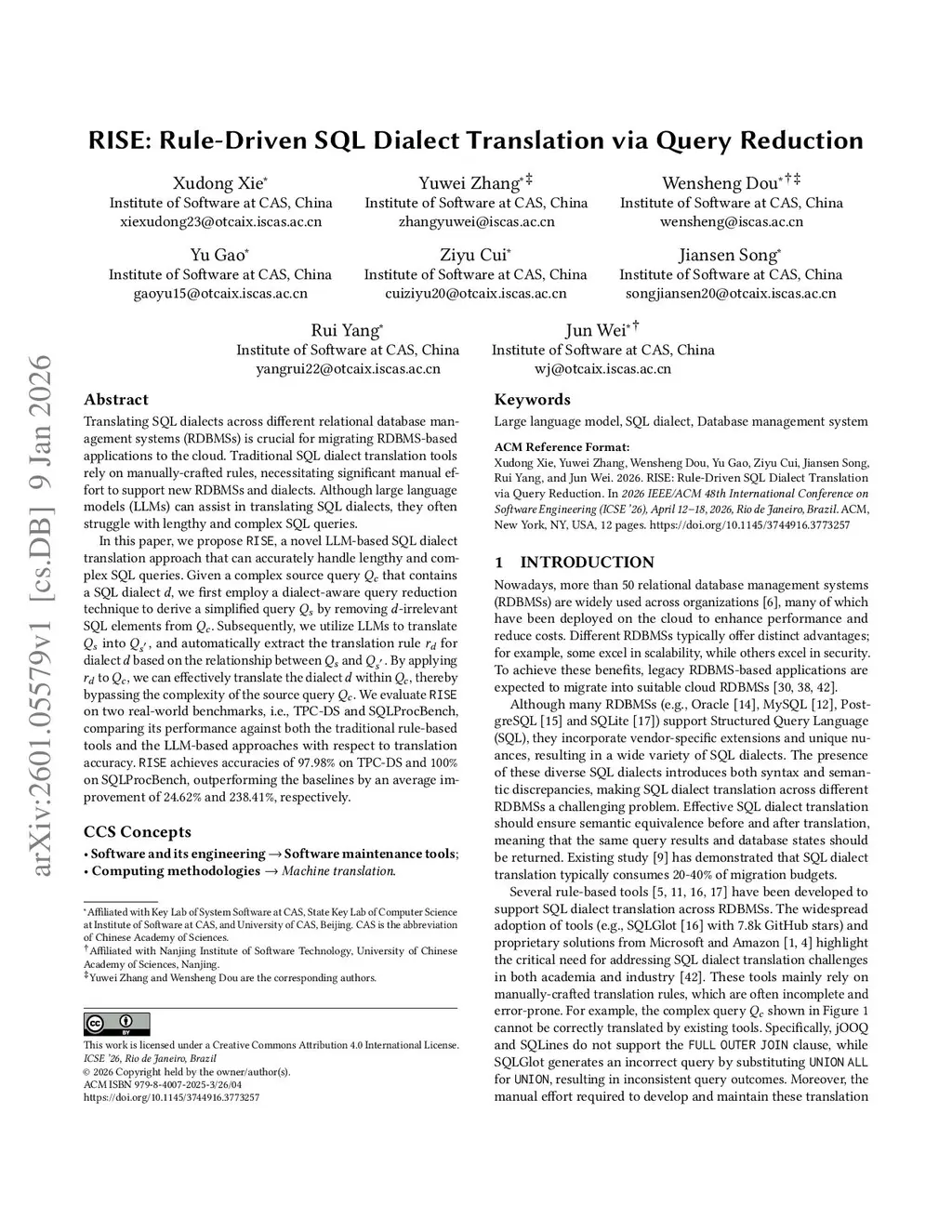 RISE: Rule-Driven SQL Dialect Translation via Query Reduction