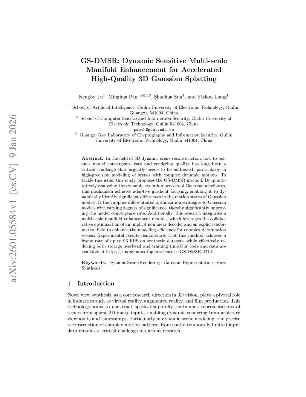 GS-DMSR: Dynamic Sensitive Multi-scale Manifold Enhancement for Accelerated High-Quality 3D Gaussian Splatting