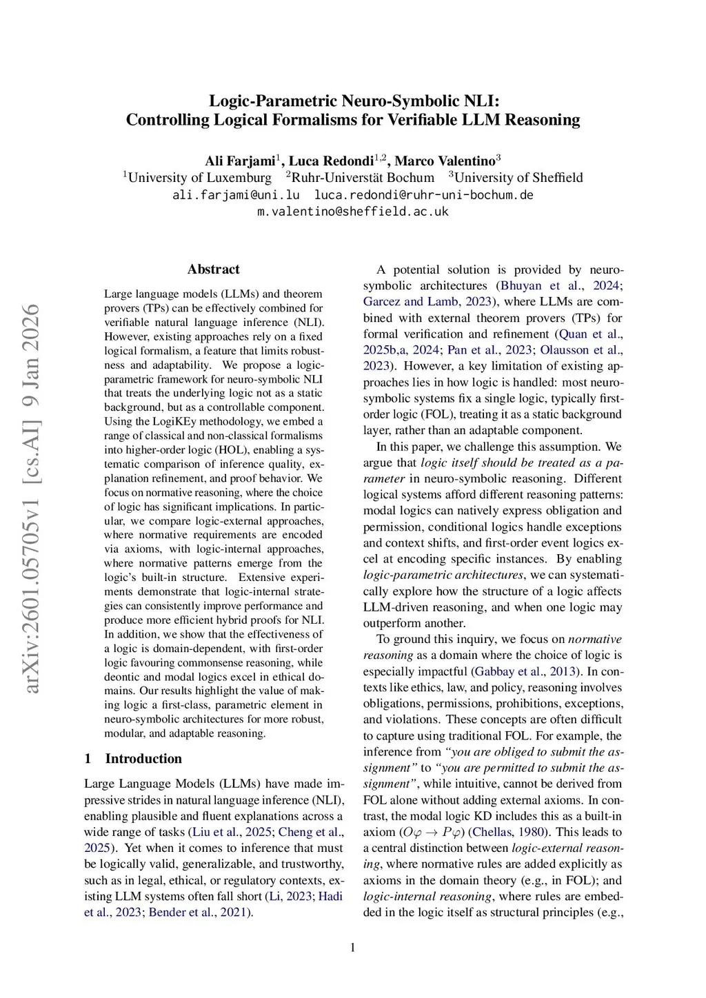 Large language models (LLMs) and theorem provers (TPs) can be effectively combined for verifiable natural language inference (NLI). However, existing approaches rely on a fixed logical formalism, a feature that limits robustness and adaptability. We propose a logic-parametric framework for neuro-symbolic NLI that treats the underlying logic not as a static background, but as a controllable component. Using the LogiKEy methodology, we embed a range of classical and non-classical formalisms into higher-order logic (HOL), enabling a systematic comparison of inference quality, explanation refinement, and proof behavior. We focus on normative reasoning, where the choice of logic has significant implications. In particular, we compare logic-external approaches, where normative requirements are encoded via axioms, with logic-internal approaches, where normative patterns emerge from the logic's built-in structure. Extensive experiments demonstrate that logic-internal strategies can consistently improve performance and produce more efficient hybrid proofs for NLI. In addition, we show that the effectiveness of a logic is domain-dependent, with first-order logic favouring commonsense reasoning, while deontic and modal logics excel in ethical domains. Our results highlight the value of making logic a first-class, parametric element in neuro-symbolic architectures for more robust, modular, and adaptable reasoning.