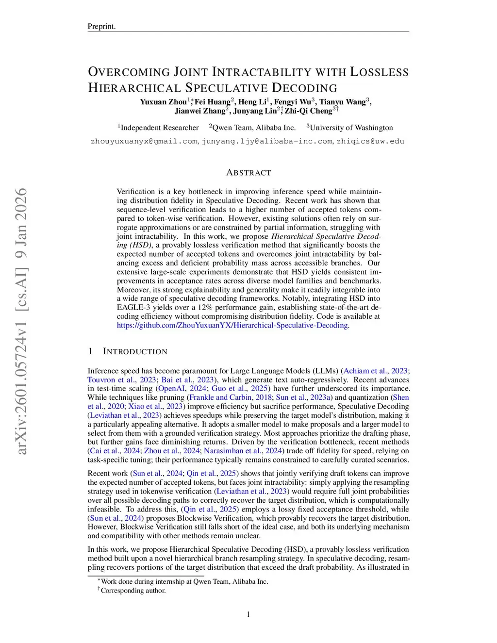 Overcoming Joint Intractability with Lossless Hierarchical Speculative Decoding