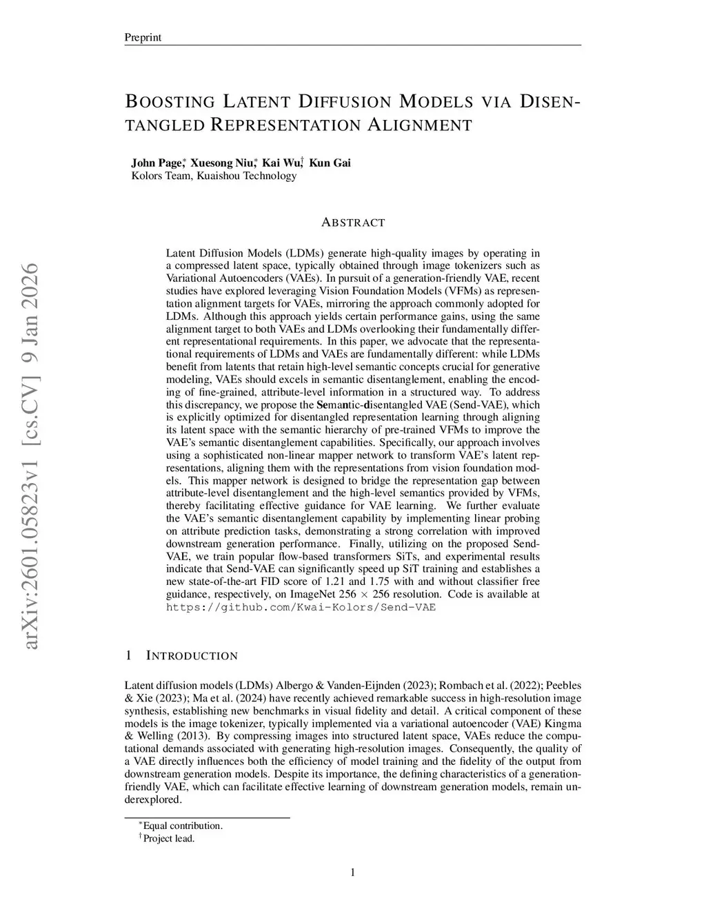 Boosting Latent Diffusion Models via Disentangled Representation Alignment