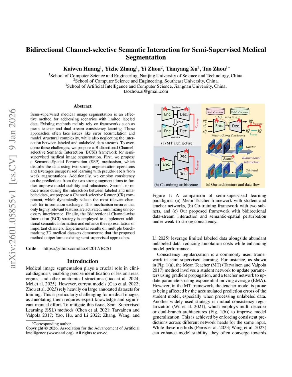 Bidirectional Channel-selective Semantic Interaction for Semi-Supervised Medical Segmentation