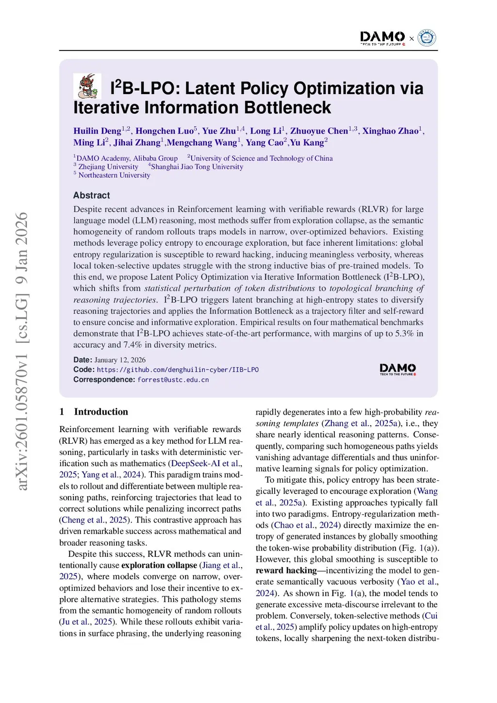 IIB-LPO: Latent Policy Optimization via Iterative Information Bottleneck