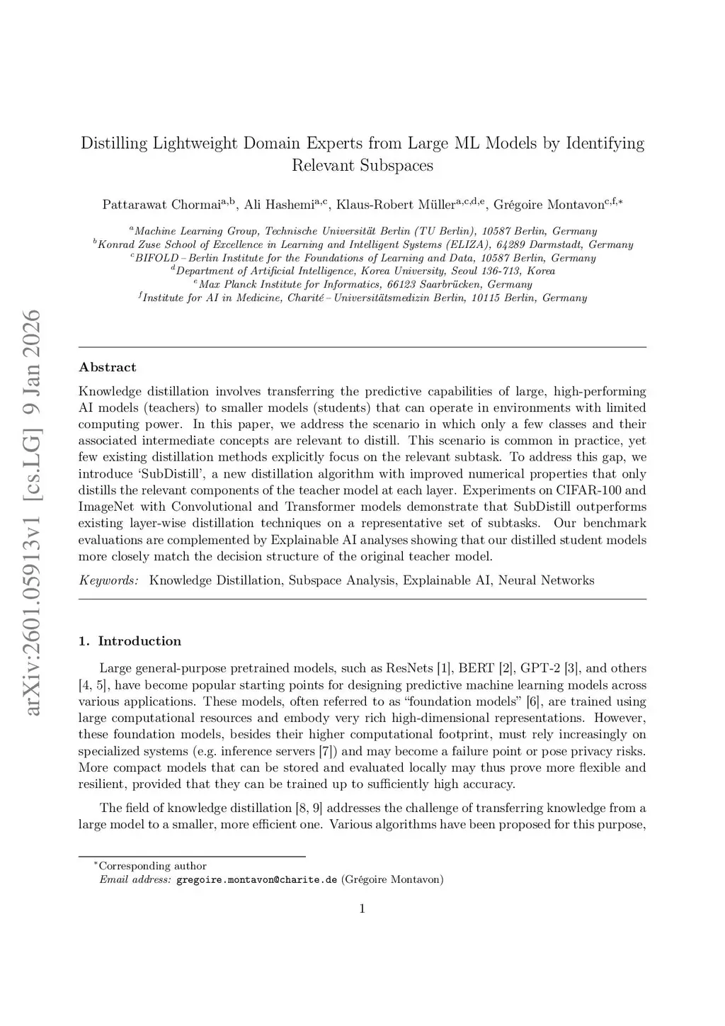 Distilling Lightweight Domain Experts from Large ML Models by Identifying Relevant Subspaces