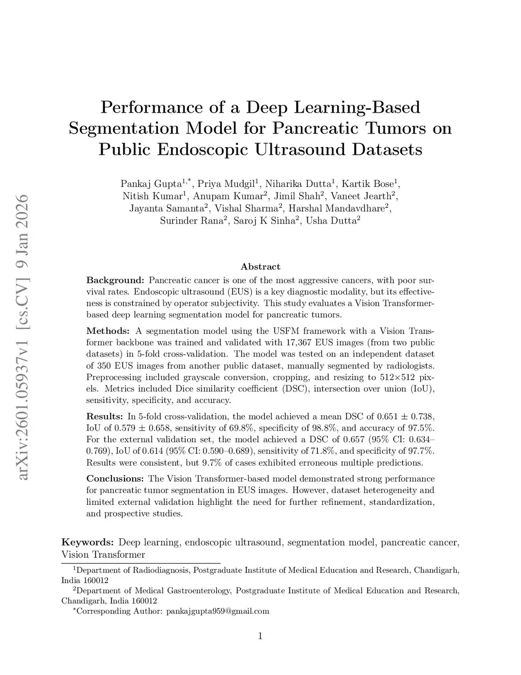 Performance of a Deep Learning-Based Segmentation Model for Pancreatic Tumors on Public Endoscopic Ultrasound Datasets