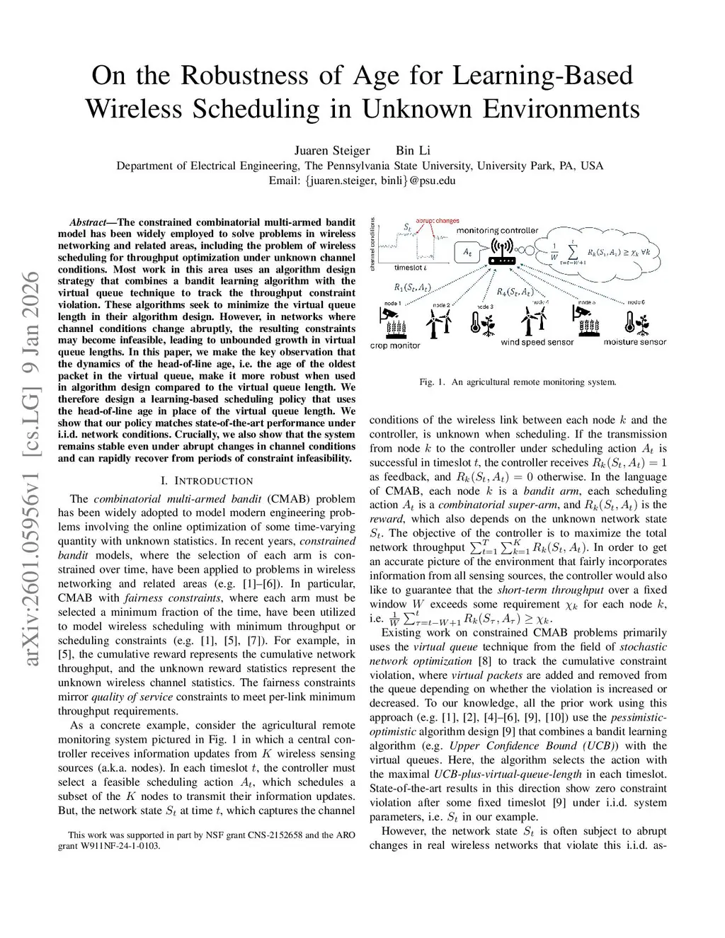 The constrained combinatorial multi-armed bandit model has been widely employed to solve problems in wireless networking and related areas, including the problem of wireless scheduling for throughput optimization under unknown channel conditions. Most work in this area uses an algorithm design strategy that combines a bandit learning algorithm with the virtual queue technique to track the throughput constraint violation. These algorithms seek to minimize the virtual queue length in their algorithm design. However, in networks where channel conditions change abruptly, the resulting constraints may become infeasible, leading to unbounded growth in virtual queue lengths. In this paper, we make the key observation that the dynamics of the head-of-line age, i.e. the age of the oldest packet in the virtual queue, make it more robust when used in algorithm design compared to the virtual queue length. We therefore design a learning-based scheduling policy that uses the head-of-line age in place of the virtual queue length. We show that our policy matches state-of-the-art performance under i.i.d. network conditions. Crucially, we also show that the system remains stable even under abrupt changes in channel conditions and can rapidly recover from periods of constraint infeasibility.