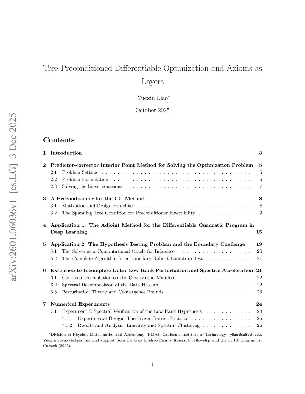 Tree-Preconditioned Differentiable Optimization and Axioms as Layers