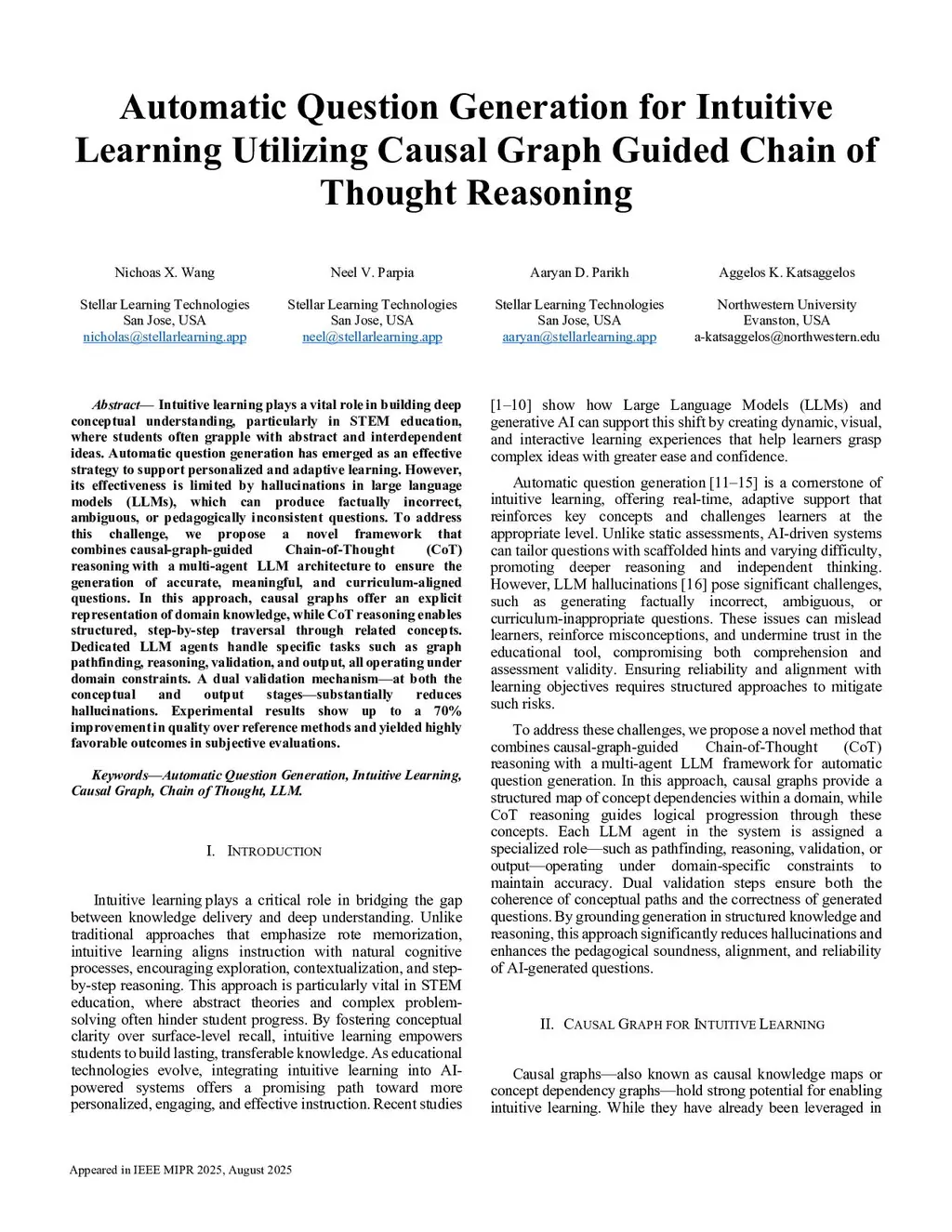 Automatic Question Generation for Intuitive Learning Utilizing Causal Graph Guided Chain of Thought Reasoning