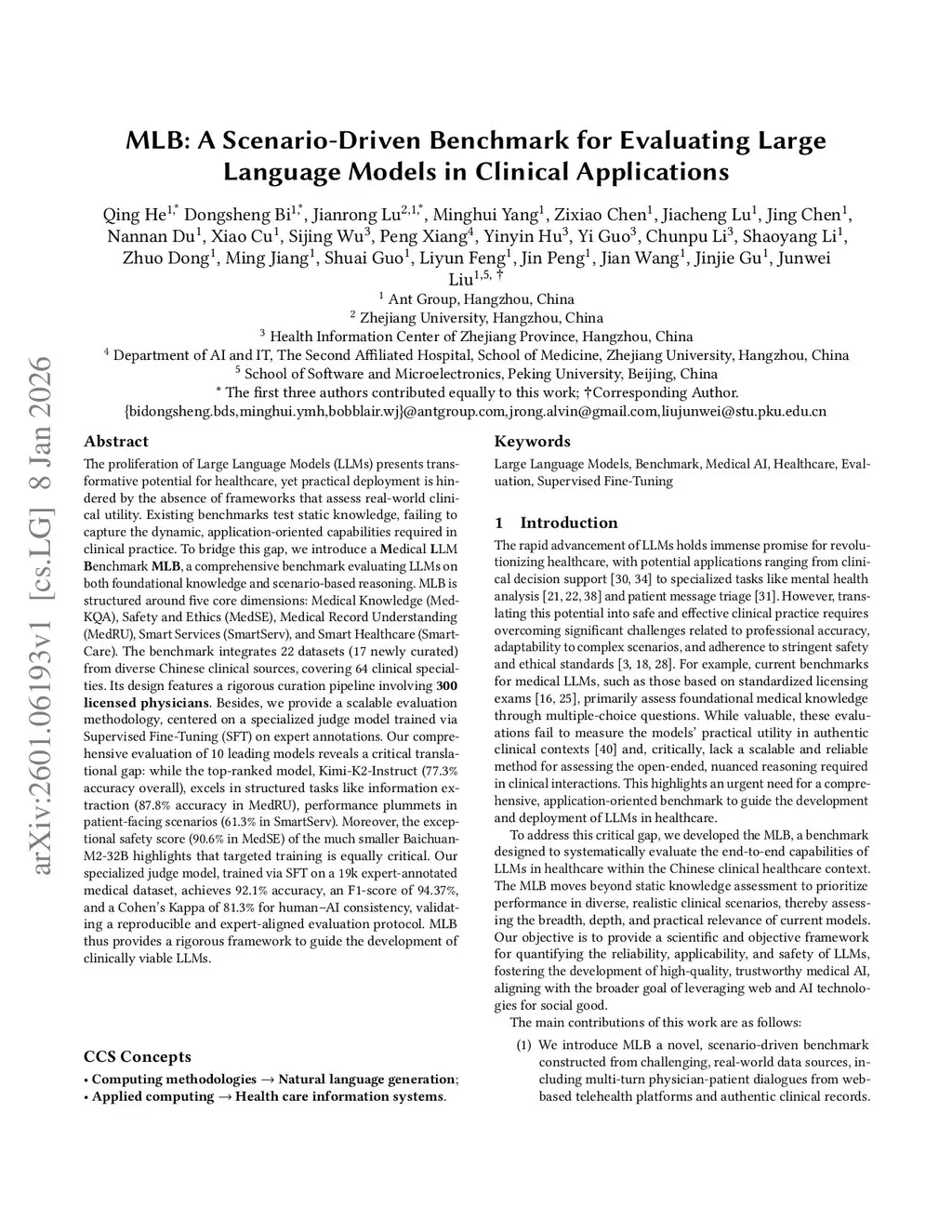 MLB: A Scenario-Driven Benchmark for Evaluating Large Language Models in Clinical Applications