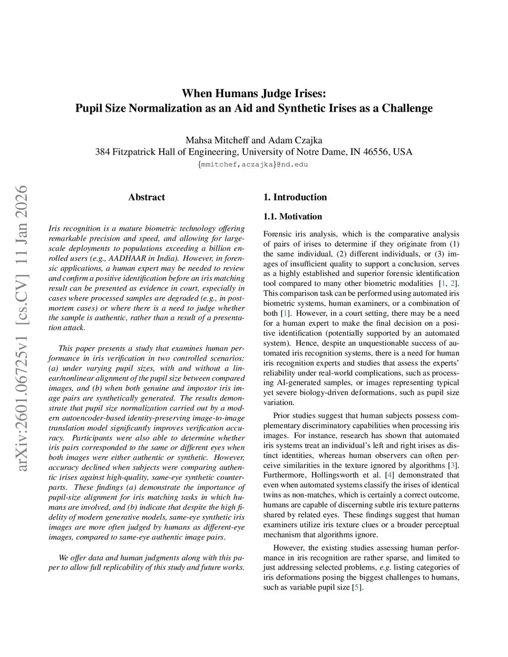 When Humans Judge Irises: Pupil Size Normalization as an Aid and Synthetic Irises as a Challenge